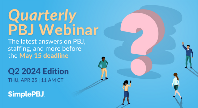 Your Q2 2024 (Jan 1, 2024 – Mar 31, 2024) PBJ staffing data is due by Wednesday, May 15 and should post to Five-Star Reports and Care Compare by the end of July 2024 (with the new HRD calculation model).